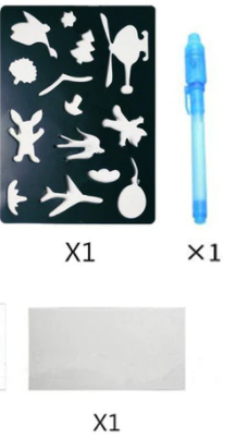 - Contenu: 1x planche + 1x stylo lumineux + 1x gabarit dessin
